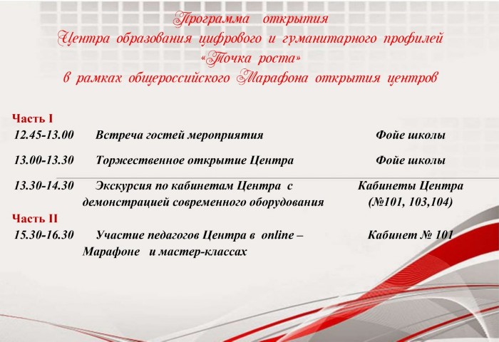 Все мероприятия пройдут на базе Центра "Точка роста".