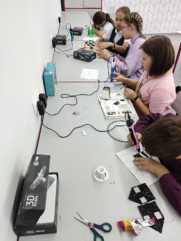 На базе Центра начата реализация новой краткосрочной дополнительной общеразвивающей программы «Основы объёмного рисования». Данная программа рассчитана на учащихся в возрасте с 7 до 14 лет. На занятиях обучающиеся овладеют техникой рисования 3d ручкой, освоят приёмы и способы конструирования целых объектов из частей, получат начальные навыки цветоведения, понятие о форме и композиции, начнут создавать творческие индивидуальные смысловые работы. Под руководством Игошевой Марины Александровны двадцать учащихся начали осваивать данную технику.